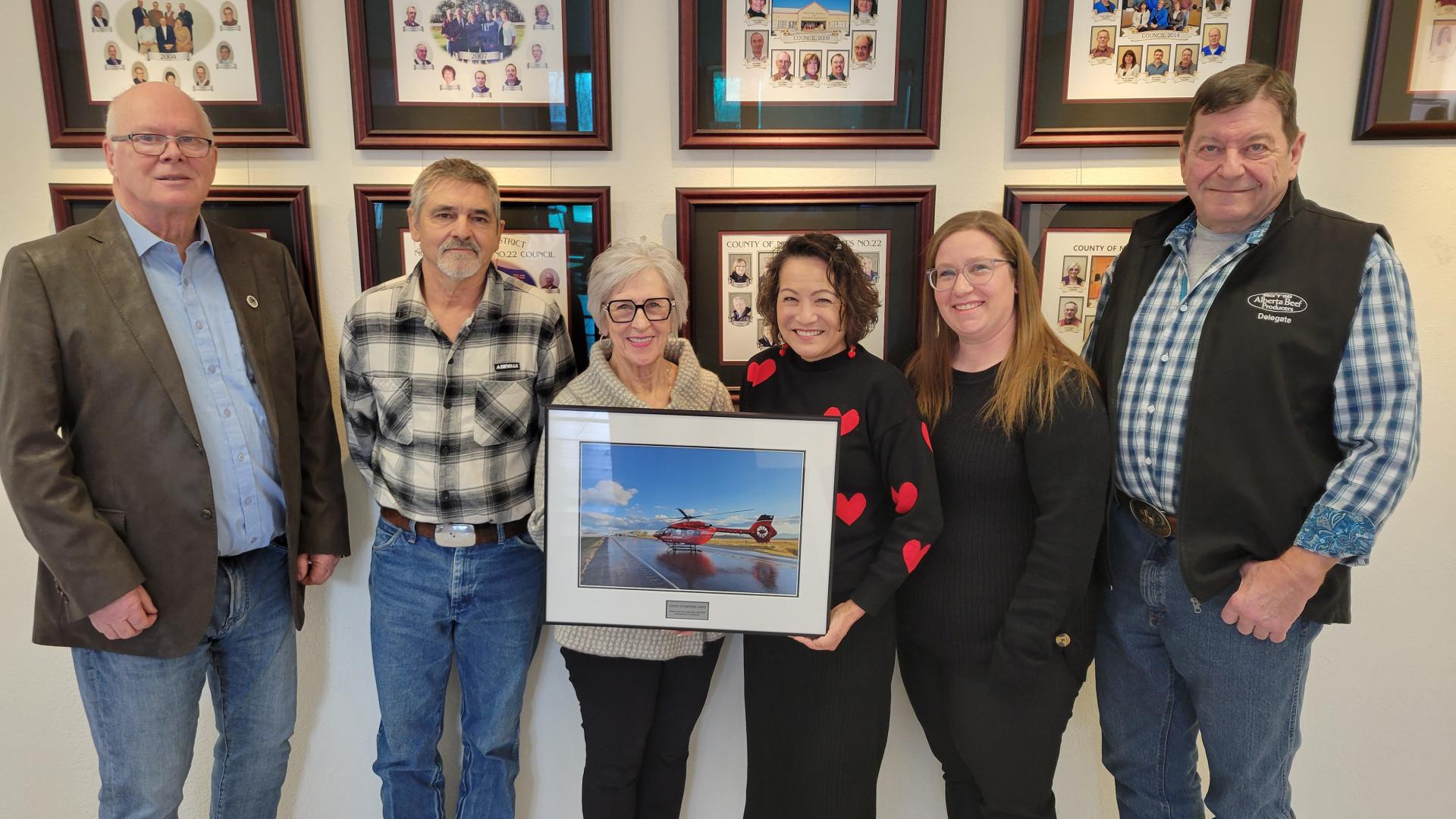 2026 also marks 19 years of partnership with STARS. To celebrate this milestone, Glenda Farnden, STARS Sr. Municipal Relations Liaison, presented Council with a framed photo of their Airbus H145 helicopter.